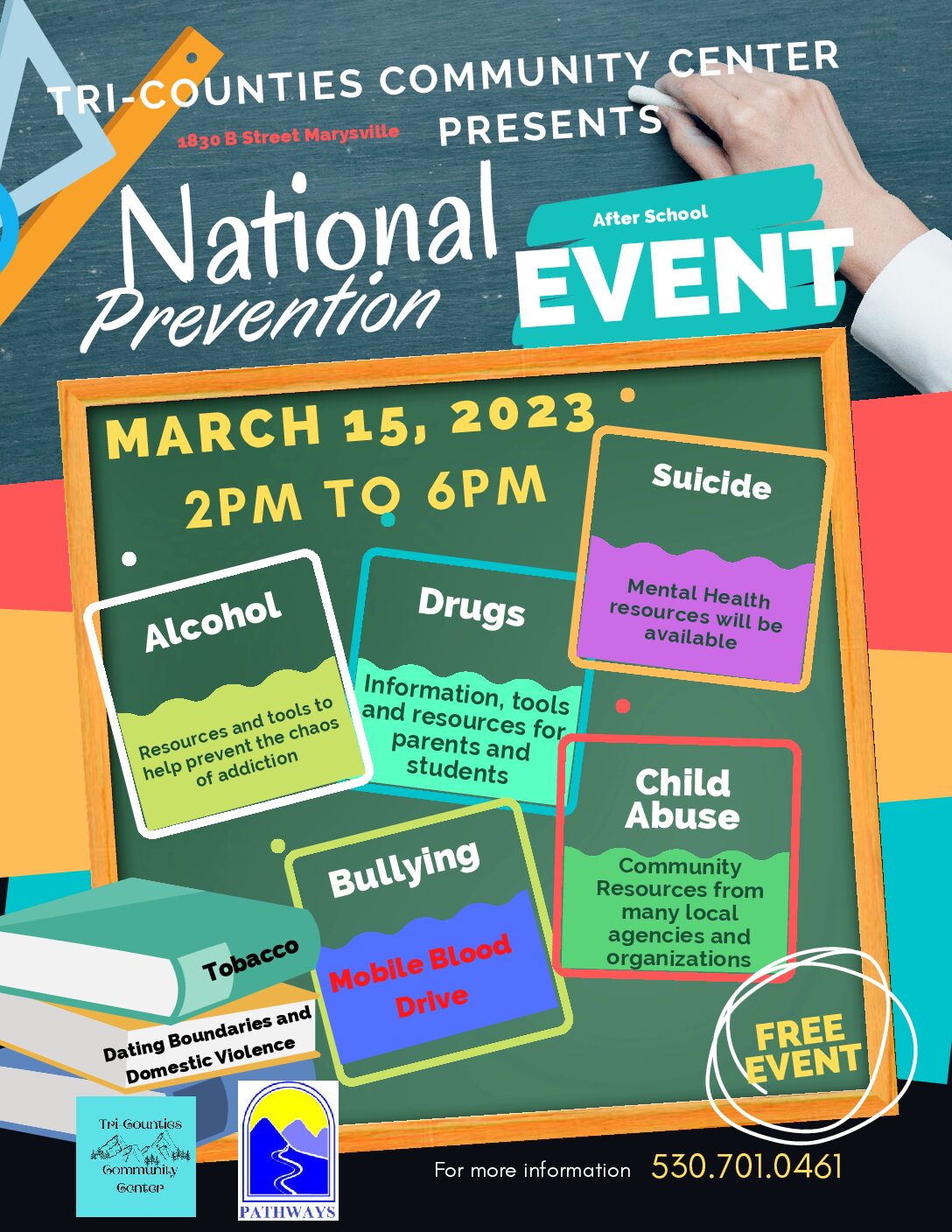 Tri-Counties Community Center 1830 B St, Marysville, CA 95901, Marysville, CA, United StatesFree Health Screenings, Resources, & Information Peach Tree Health, Sutter Yuba Behavioral Health, Adventist Rideout, Ampla Health, Victory Outreach Church, Pathways, plus many more. Health Screenings, Blood Pressure, Diabetes, Cholesterol, Behavioral Health, Women's Health, Weight Los, and Sober Living